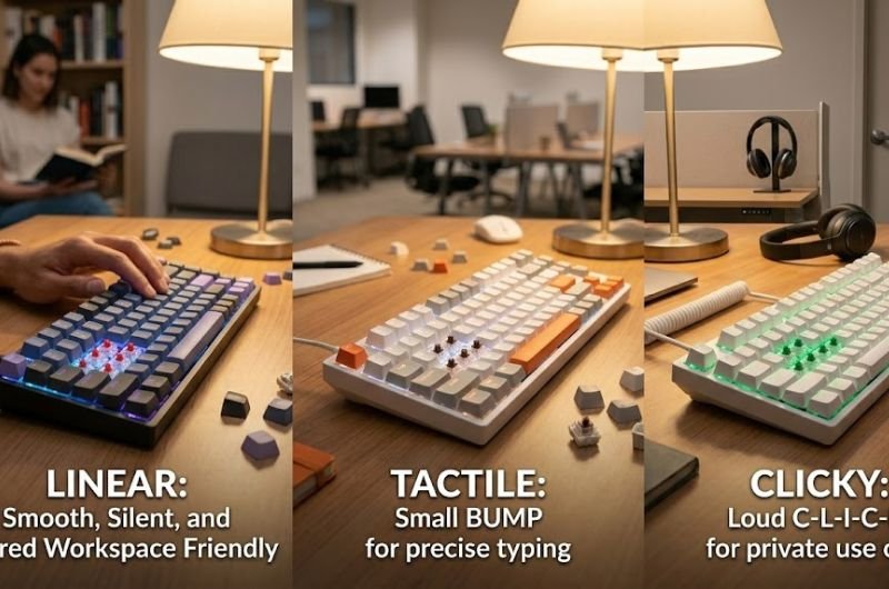 Linear switches are smooth and quiet. Tactile switches give a small bump feeling. Clicky switches make a loud click sound. For a novice, linear or tactile switches are typically higher. They are not too loud. They are clean to use. This is critical while choosing best mechanical keyboard for beginners.